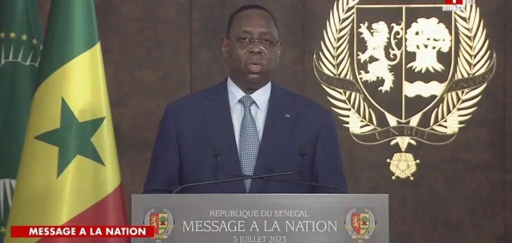 Il a fermement condamné les violences qui ont suivi la condamnation à deux ans de prison de son principal opposant, Ousmane Sonko, dans une affaire de mœurs. Elle le rend en l’état actuel inéligible. Elle a engendré début juin les troubles les plus graves depuis des années au Sénégal, faisant 16 morts selon les autorités, 24 selon Amnesty International et une trentaine selon l’opposition. « L’objectif funeste des instigateurs, auteurs et complices de cette violence inouïe était clair : semer la terreur, mettre notre pays à l’arrêt et le déstabiliser. C’est un véritable crime organisé contre la nation sénégalaise, contre l’État, contre la République et ses institutions », a affirmé dans son discours le président Sall.